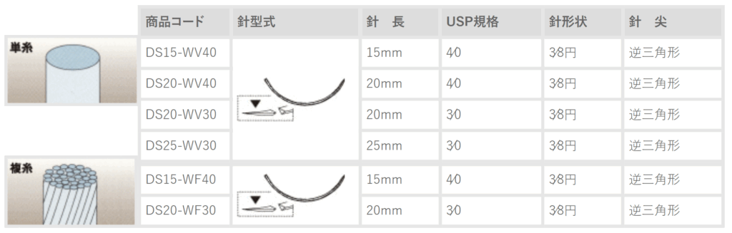 - より長い抗張力保持機関と単糸ならではの良好な組織通過性